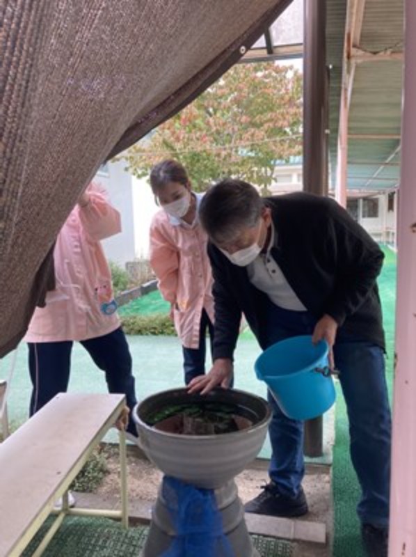 「先生、幼稚園でメダカは要らんかな?」と声を掛けてくださり、思わず「わぁ、嬉しい~!良いんですか?」と答えてしまいました。職員間でも、寂しいね~と言っていた矢先の出来事で、有難く分けていただくことにしました。