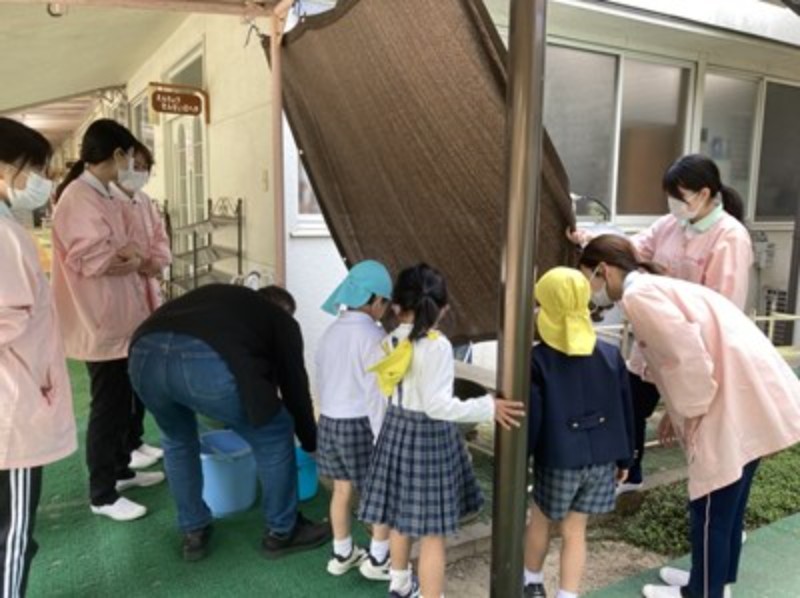 翌日、メダカが増えていることに気付いた子ども達が、先生と一緒に「♪そーっとのぞいてみてごらん~」と歌いながら、本当にそーっとのぞいていて、情操教育の素晴らしさを実感しました。